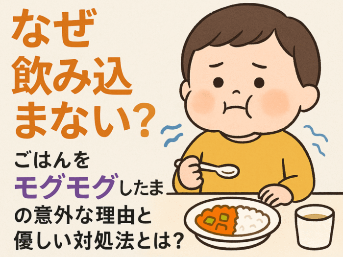 ごはん中に、子どもがいつまでも口の中でもぐもぐしていて「どうして飲み込まないの?」と不安になった経験はありませんか?