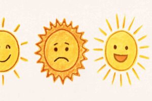 - ✅ 細かい線やギザギザ、暗い色の太陽: イライラ・不安・落ち込みの表現のことがある。