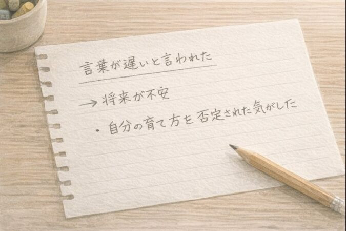 「言葉が遅いと言われた」 それを書いた後、隣に「それの何が一番不安なのか」を書き足してください。