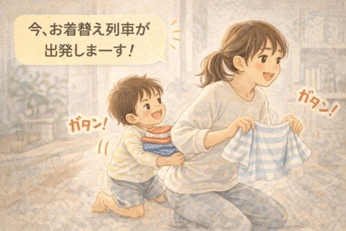 「次は何をするんだっけ?」とクイズ形式にしたり、「今、お着替え列車が出発しまーす!」と遊びに巻き込んだり。 3歳児は「やらされている」と感じなければ、意外と協力的なパートナーになってくれるんです。