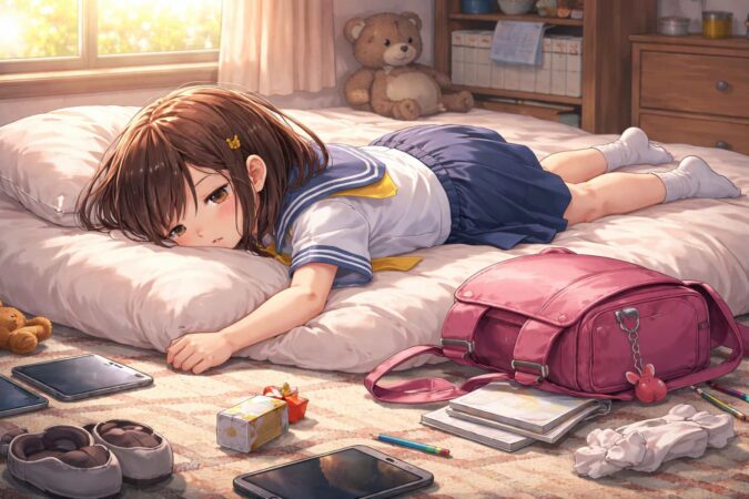 「ただいま……」 玄関のドアが開いた瞬間、力なく靴を脱ぎ捨てて、そのまま床に座り込んでしまう。 あるいは、カバンを放り出したかと思えば、ささいなきっかけで堰を切ったように泣き出したり、怒り出したり。
