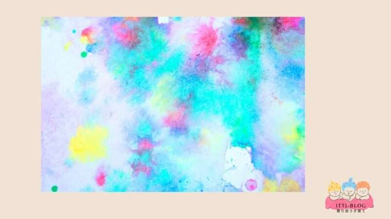 この時期は、作品の完成度よりも「変わった」「動いた」という感覚体験が中心です。にじんだ瞬間に言葉を足すなら、「広がったね」「動いてるみたいだね」と事実をそのまま伝えるだけで十分です。
